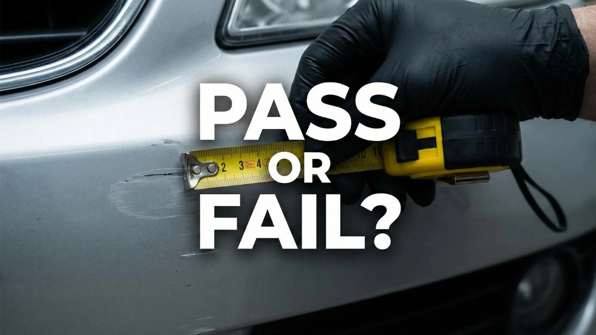 The inspector will run their fingernail across the scratch. If their nail “catches” or clicks in the groove, it is a fail. It has penetrated the clear coat.
